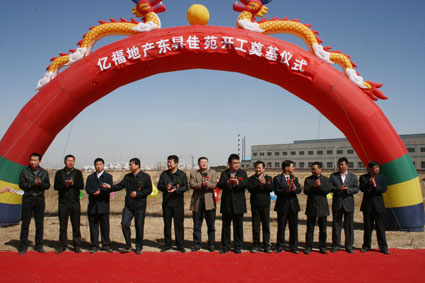 | 30.2010年4月10日 | 巨鼎集團員工住宅小區“東昇佳苑”奠基,這是全體員工的一項新的福祉。![]() |